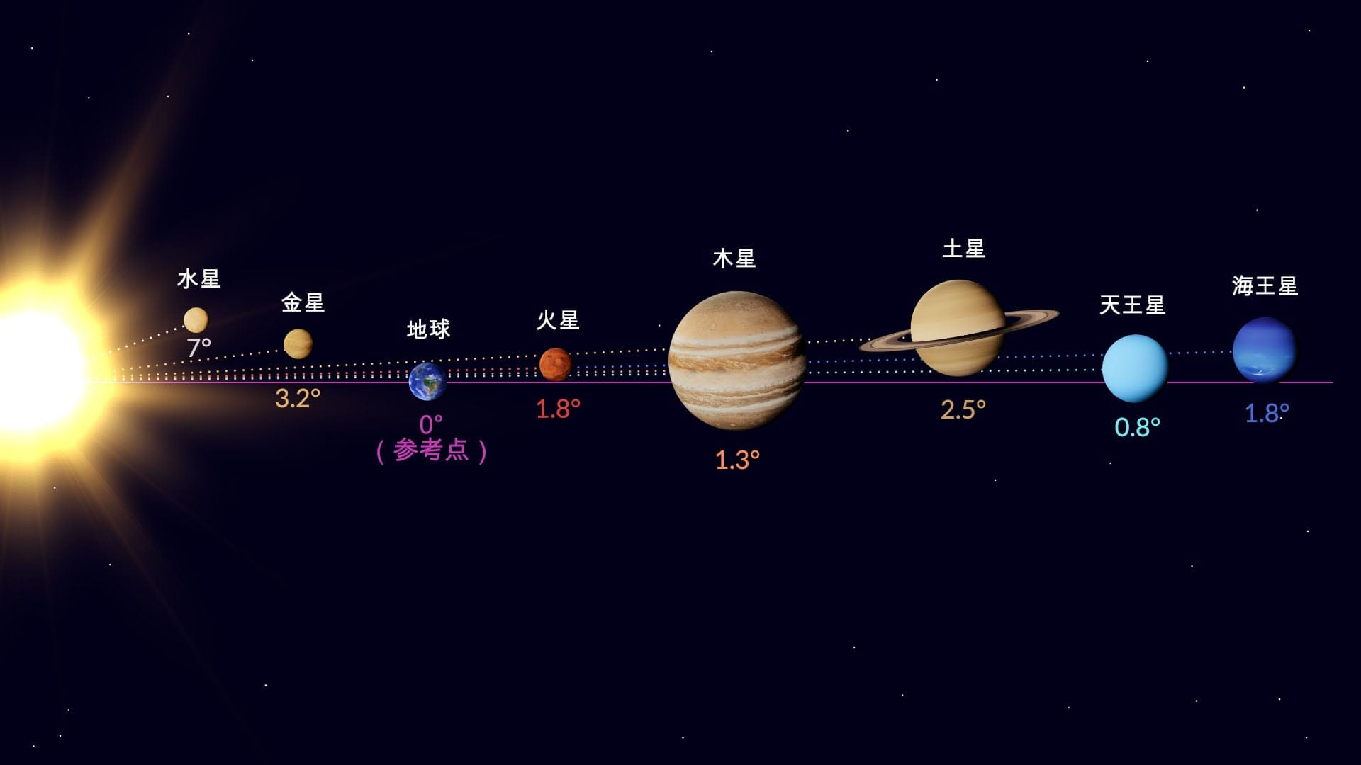- 客观上,太阳系行星的公转轨迹平面“差不多”在同一个平面上,但不重合