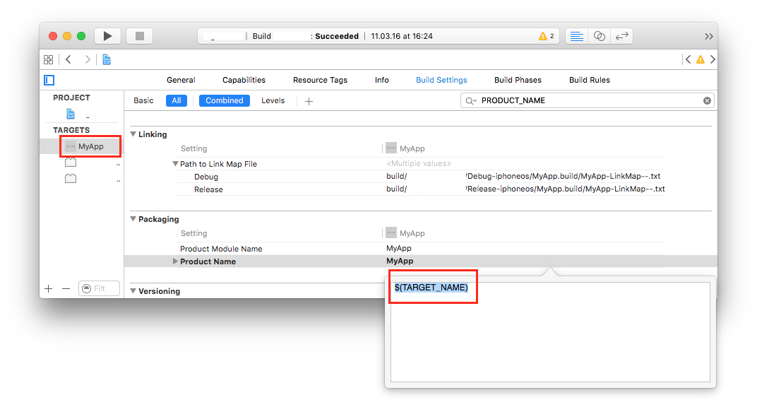 product name - 这里也同样可以知道如果搜索环境变量,如"$(PRODUCT_NAME)"