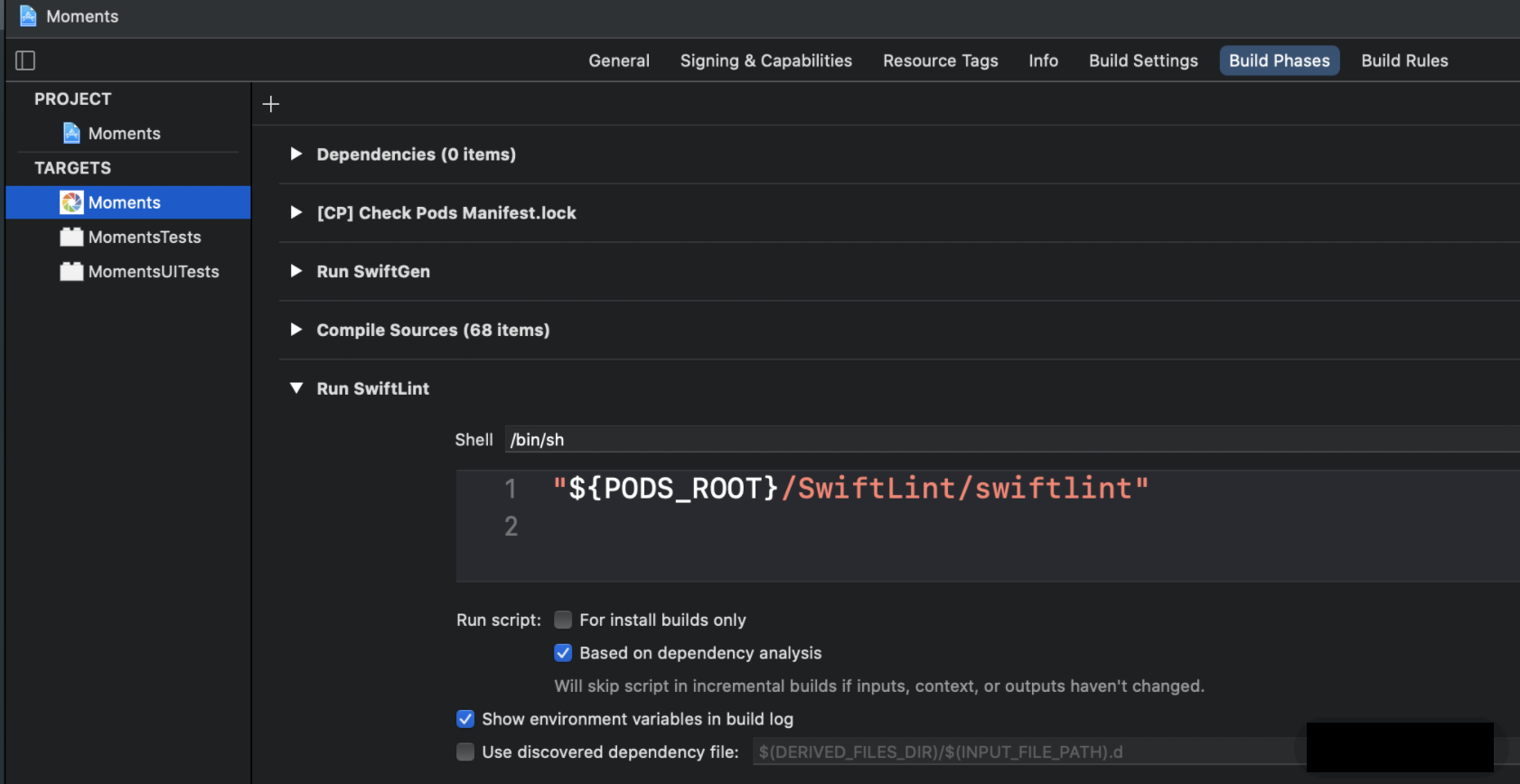 - CocoaPods 还会修改 Xcode 项目中的 Build Phases 以此来检测 Podfile.lock 和 Manifest.lock 文件的一致性,并把Pods_<项目名称>.framework动态库嵌入我们的主项目中去。