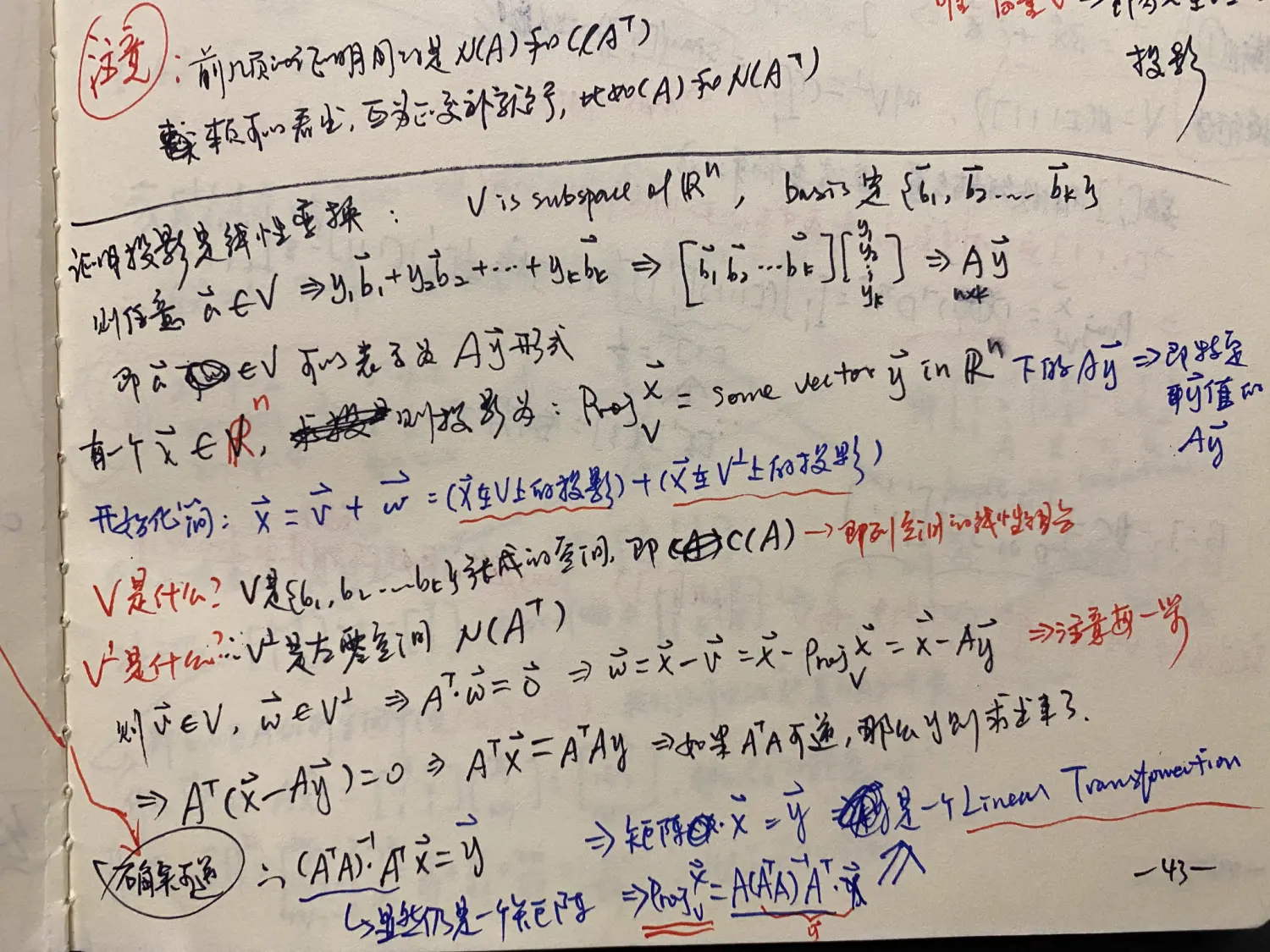 - 这里是故意这么说的,强调都是投影,其实在向V投影时,在V⊥的投影(w)就是那条垂线