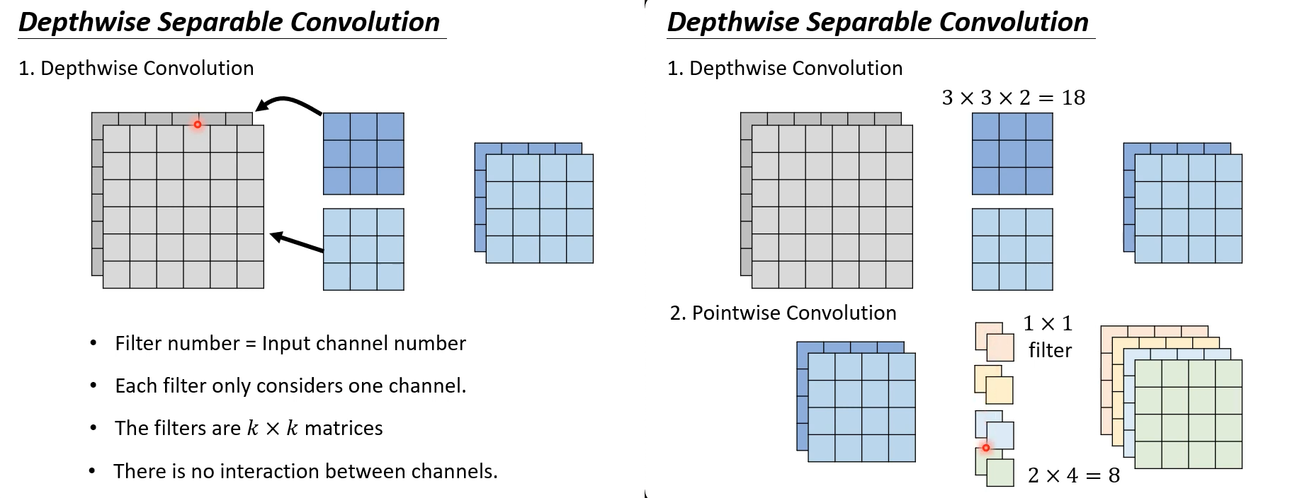 - 很多人对CNN的误解刚好就是Depthwise Convolution的样子,即一个卷积核对应一个输入的channel(事实上是一组卷积核对应所有的输入channel)