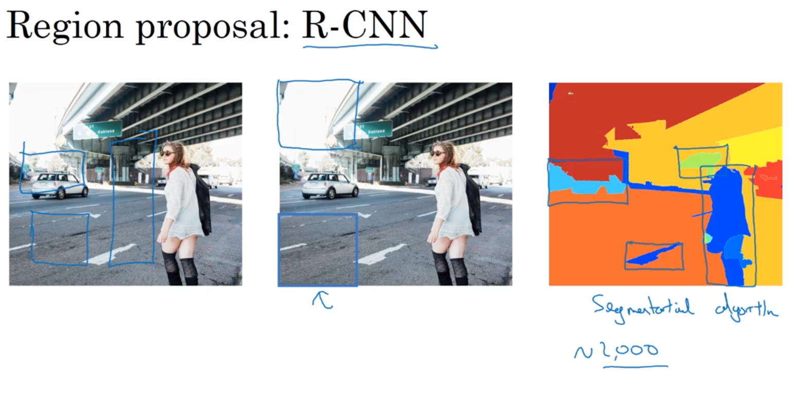 - 首先通过选择性搜索,对待检测的图片进行搜索出~2000个候选窗口。