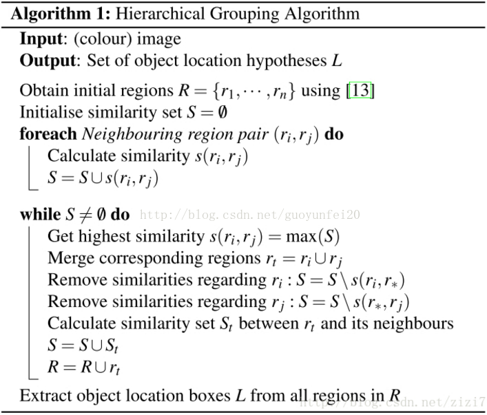 - step0:生成区域集R,具体参见论文《Efficient * Graph-Based Image Segmentation》