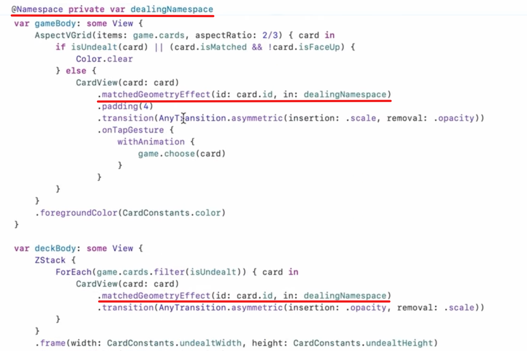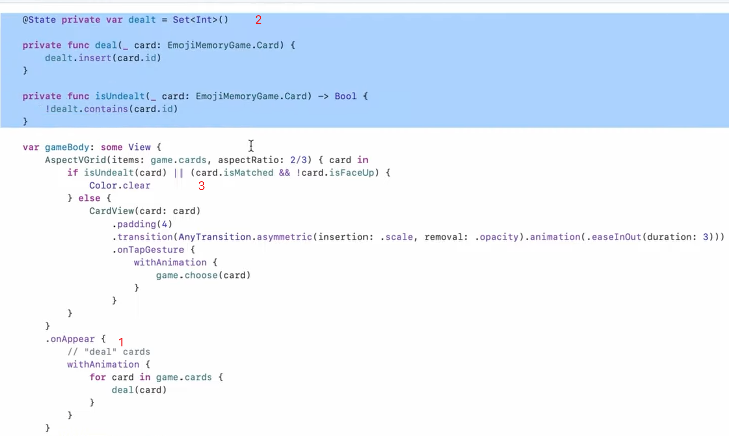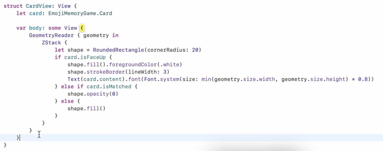 typealias Card = MemoryGame<String>.Card别名var a_int_array = [Int]()一种初始化方式- extension中的属性可以直接用,(当然也可以用