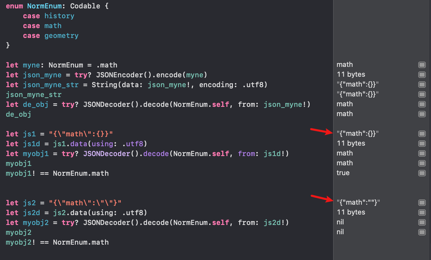 rawValue,它是可以被打印,也可以被反射回枚举的myEnum(rawValue: value) - 枚举的每个state都可以有