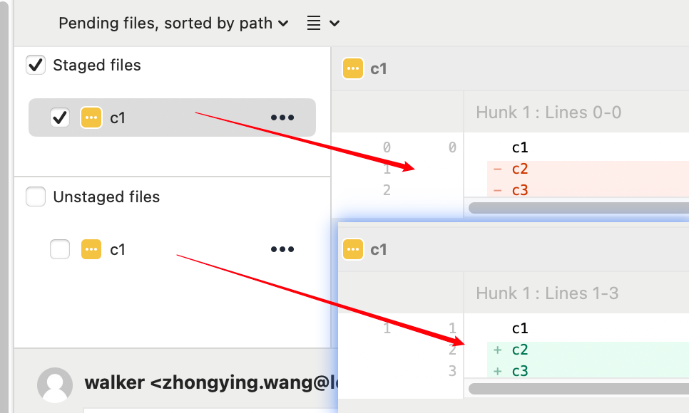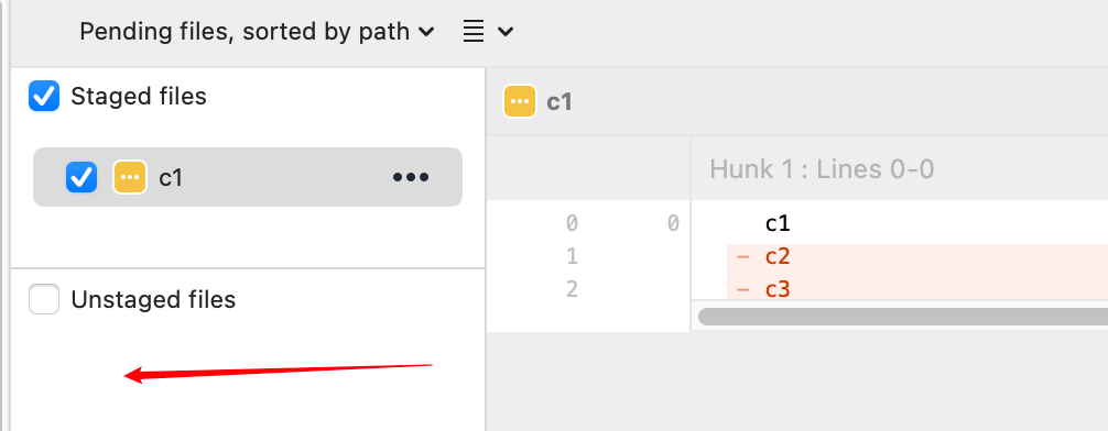 staged, 你会神奇地发现,两个相反的改动就抵消了,即一少枨科要提示没有任何变动 - 同样,你把staged的进行unstage,也会在unstage区域互相抵消