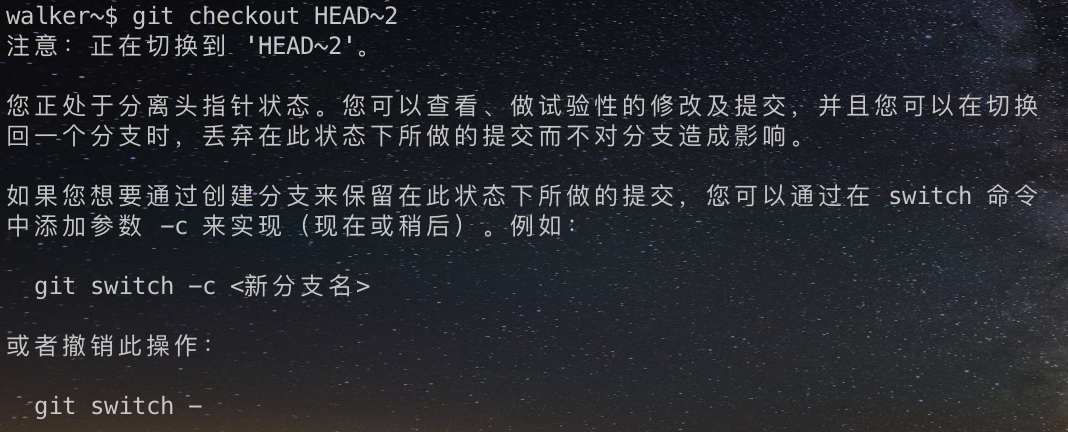 我也不知道分离HEAD有什么用,果然,操作一下后,官方提示是给测试的: