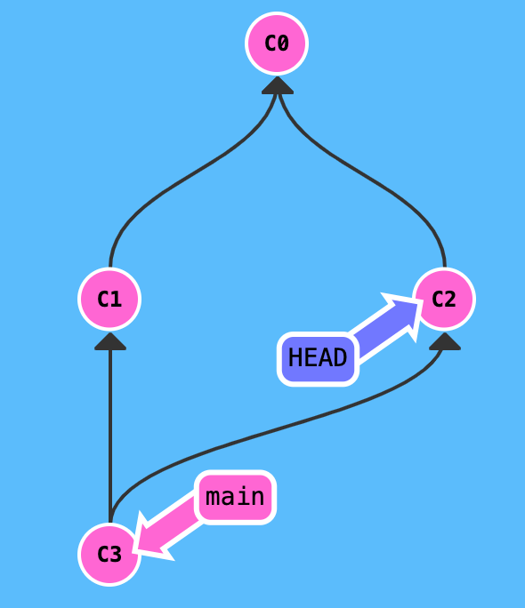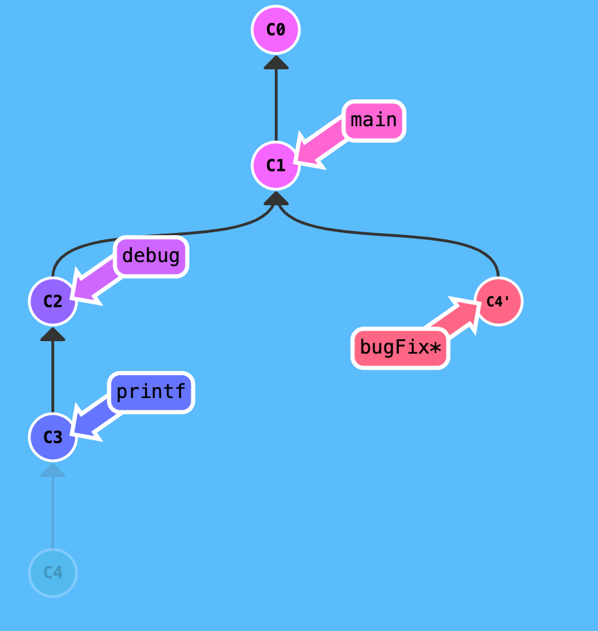 - 从C3开始(就是checkout到的位置)产生了新的分支