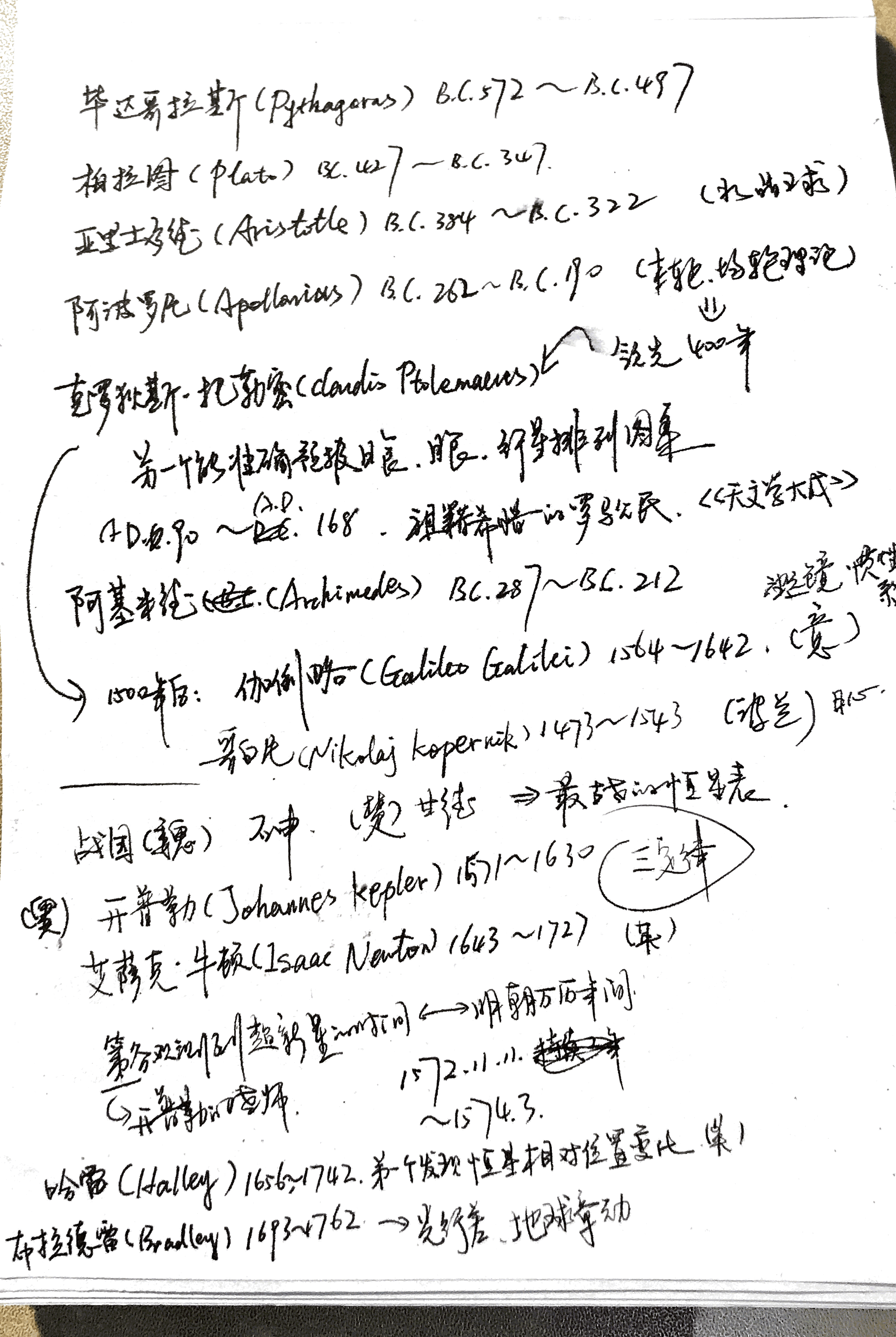 这是汪洁的《天文学史话》系列《星空的琴弦》的阅读笔记手稿,后来用Minimax Agent OCR扫描后整理了文字版,已人工校对。
